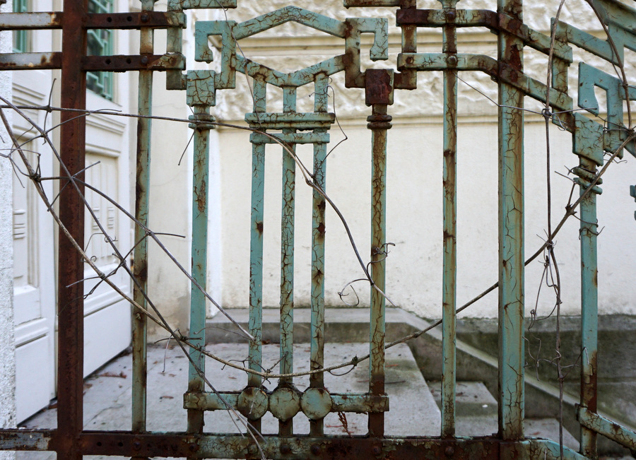 In case you wondered, no, this is not a storage space for energy drinks. Since this house was built in the Fin de siècle, it is a boot scraper. Those contrivances were necessary in times when there were no pavements and your shoe soles accumulated mud and horse manure. Boot scrapers were made from wrought iron, cast iron, sheet steel or steel wire.