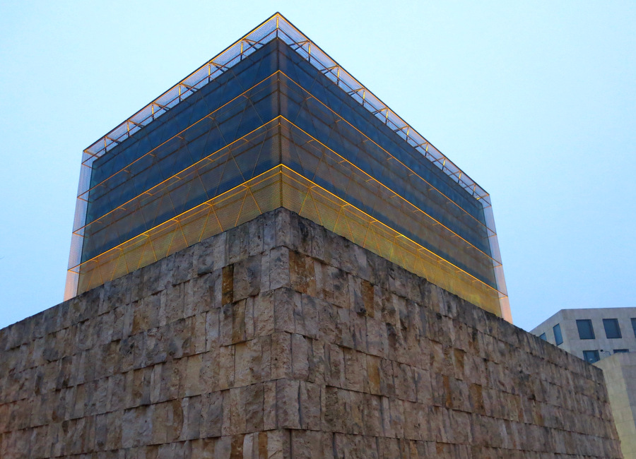 Ohel Jakob is a synagogue in Munich, Germany. It was built between 2004 and 2006 as the new main synagogue for the Jewish community in Munich and is located at the Sankt-Jakobs-Platz. Ohel Jakob was designed by architects Rena Wandel-Hoefer and Wolfgang Lorch who had previously completed the New Synagogue in Dresden. The building is a cubic structure of travertine stone topped by a glass cube. The glass roof represents a tent (Ohel), symbolizing Moses’ 40-year-journey through the desert.